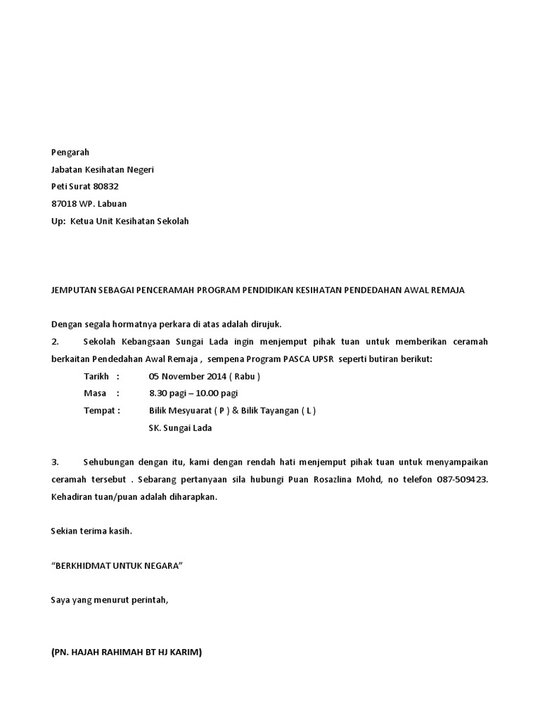 Contoh Surat Rasmi Ke Jabatan Kesihatan